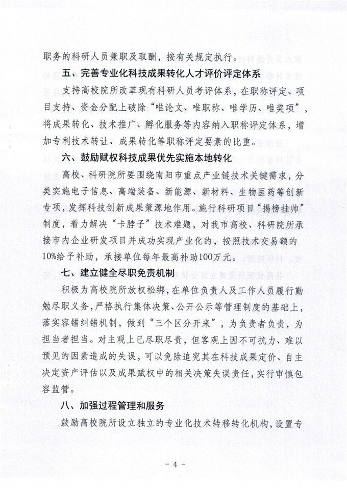 南阳市科技局关于印发《鼓励高校院所开展职务科技成果权属改革促进科技成果在宛转化措施》的通知